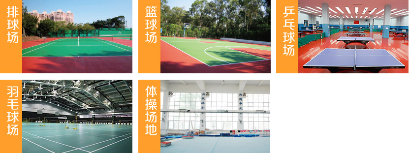 籃球場(chǎng)、網(wǎng)球場(chǎng)、羽毛球場(chǎng)、乒乓球場(chǎng)、體操場(chǎng)地等運(yùn)動(dòng)場(chǎng)地面。